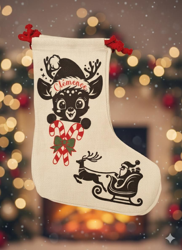Chez nous, tout est possible ! Que vous ayez une idée très précise en tête ou que vous préfériez un style plus classique, nous réalisons des chaussettes de Noël sur mesure. Vos désirs sont nos commandes, alors n'hésitez pas à nous faire part de vos demandes de création spéciales !